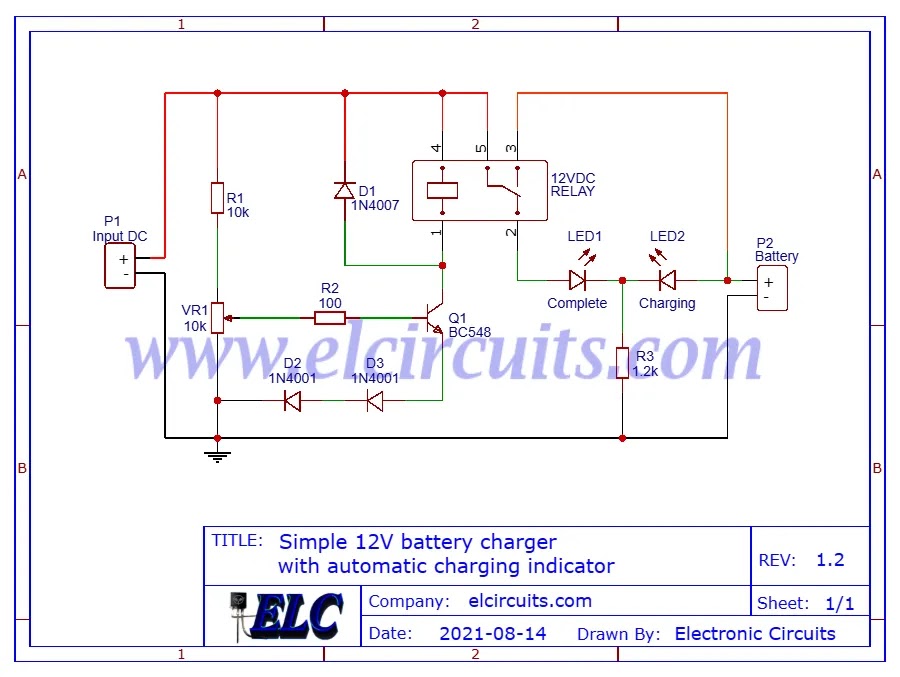 | Simple 12V Battery Charger, automatic with charging indicator + PCB |