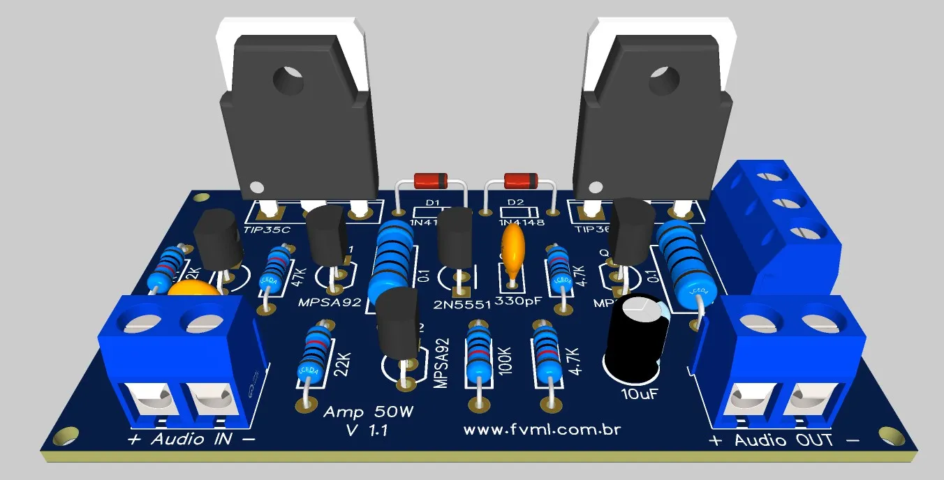 This 50W RMS Class AB amplifier represents the perfect balance between simplicity and performance. With easily available components and a time-tested design, it offers an excellent option for those seeking sound quality without excessive complexity.