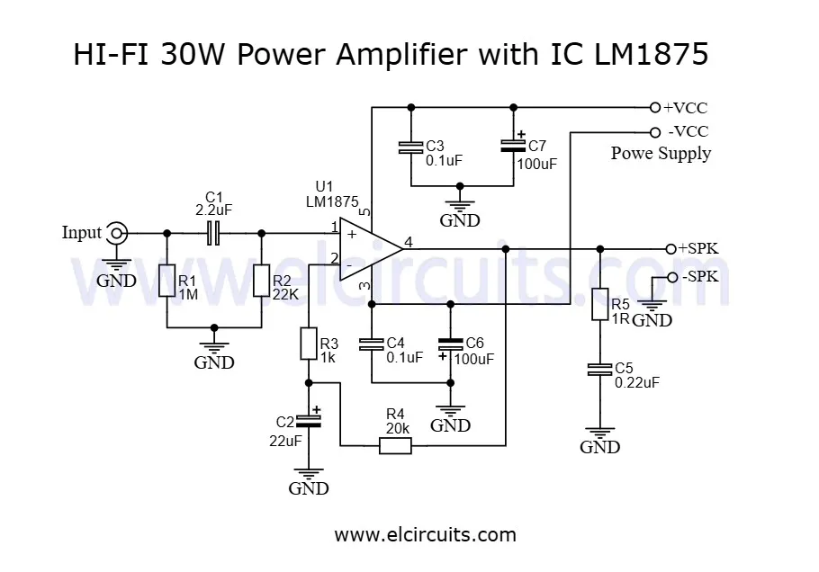 - Output Stage: The LM1875’s output stage drives the speaker directly through C6, which blocks any DC offset from reaching the speaker.