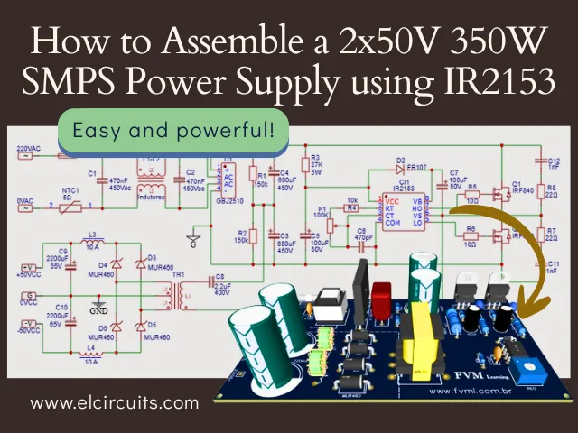 Symmetrical SMPS Switched Power Supply with IR2153 and IRF840 – Complete Guide 2x50V 350W + PCB